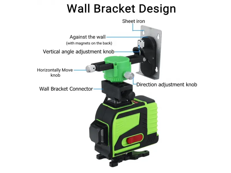 ХАРАКТЕРИСТИКИ:16 линии4 равнини (4 лазера)Лазер клас 2 530nm (зелен)Минимално отстояние на хоризонталния лъч от пода 7 ммРаботен обхват 30 мСтепен на защита: IP54 влагоустойчив и прахоустойчивБатерия 3.6V 6000mAh (литиево йонна) – време за работа до 16 часаРазмери 130 мм/80мм/135 ммТочност 1 мм при 7 мВреме на работа 12 – 16 часа работен обхват: 30 мВъзможност за включване и изключване на линиите по отделно, от нивелира или чрез дистанционно.Възможност за работа с адаптер, когато батериите се изтощят.Работен обхват 3 градуса (При по голям ъгъл от 3 градуса нивелира издава звуков сигнал за невъзможност за нивелиране)Има възможност за изключване на тази аларма и заключване на лазерния лъч при необходимост от линия която да не бъде нивелирана, а под някакъв градус КОМПЛЕКТЪТ ВКЛЮЧВА:Дистанционно управлениеДве батерииДържачМагнитна стойка за стенаМетална планкаСтойка за повдигане от под (разтягаща се)ТриподКонектор за стативЛинеен конектор за стативЗарядноКуфарчеСтойка за повдигане от под (разтягаща се тринога)