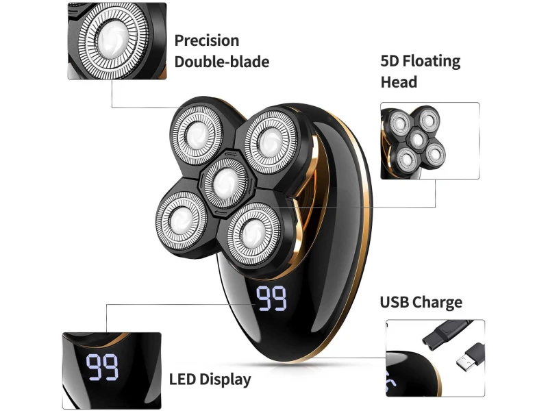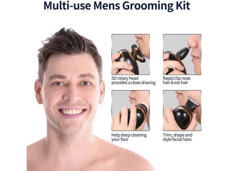 Комплект 5в1 безжична самобръсначка VGR V-316 е създадена специално за мъже, които винаги искат да изглеждат добре. Самобръсначката притежава режеща глава с 5 въртящи се остриета, използваща системата за 5D бръснене, която пасва идеално на контура на лицето.