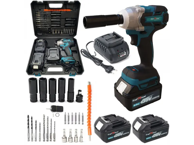 Открийте мощта на акумулаторния ударен гайковерт KraftRoyal 36V 8Ah с 35 части! 💪 С максимален въртящ момент от 850 Nm и безчетков двигател, той осигурява изключителна ефективност и дълготрайност. Ергономичният дизайн и вграденото LED осветление правят работата по-лесна и удобна. Не пропускайте възможността да се сдобиете с този незаменим инструмент! Поръчайте сега и подобрете своите умения! 🔧