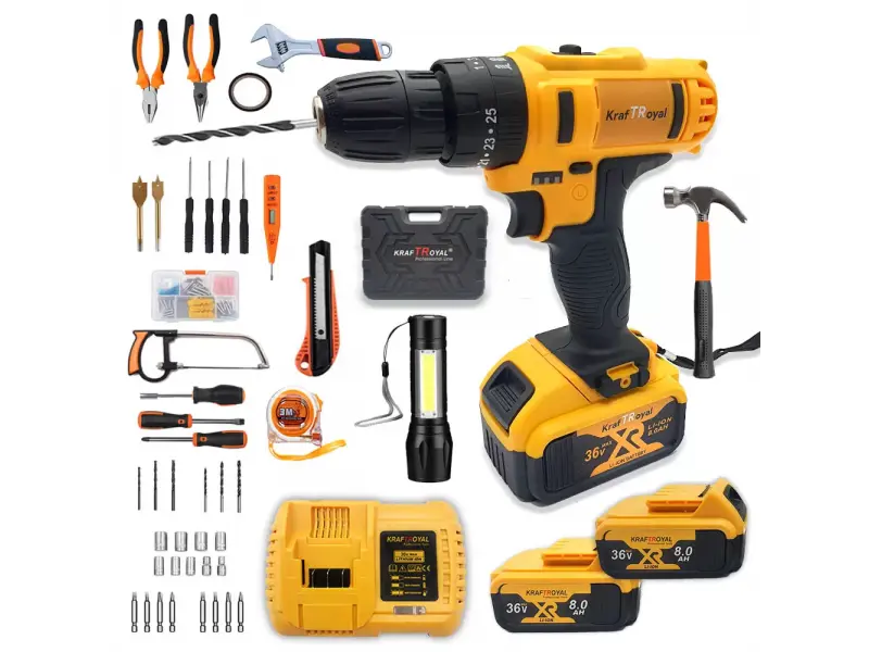 Открийте мощността на акумулаторния винтоверт KRAFT Royal 36V! 💪 С 111 части и удобен куфар, той е идеален за всякакви проекти у дома. Ударно пробиване, бързо затягане и дълготрайна батерия за безпроблемна работа. Не пропускайте възможността да улесните задачите си! Поръчайте сега! 🔧