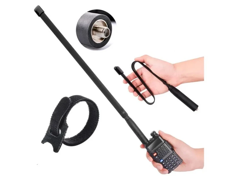 ГъвкаваМоже да усили значително сигнала на вашетата радиостанция. Разширете обхвата на вашата комуникация.SMA - женски за Baofeng UV-5R / UV-6R / UV-9R / 888S / UV-82 и другиСнабдена е с лепенка за загъване при нужда.Спецификация:Материал: КаучукЦвят черенРазмер: 465мм.Тип конектор: SMA-женскиBand: Dual Band VHF / UHFЧестота: 150 / 440MHzПриложим модел: Baofeng UV-5R / UV-6R / UV-9R / 888SПакетът включва:1бр. Антена1бр. "Magic Sticker" Лепенка