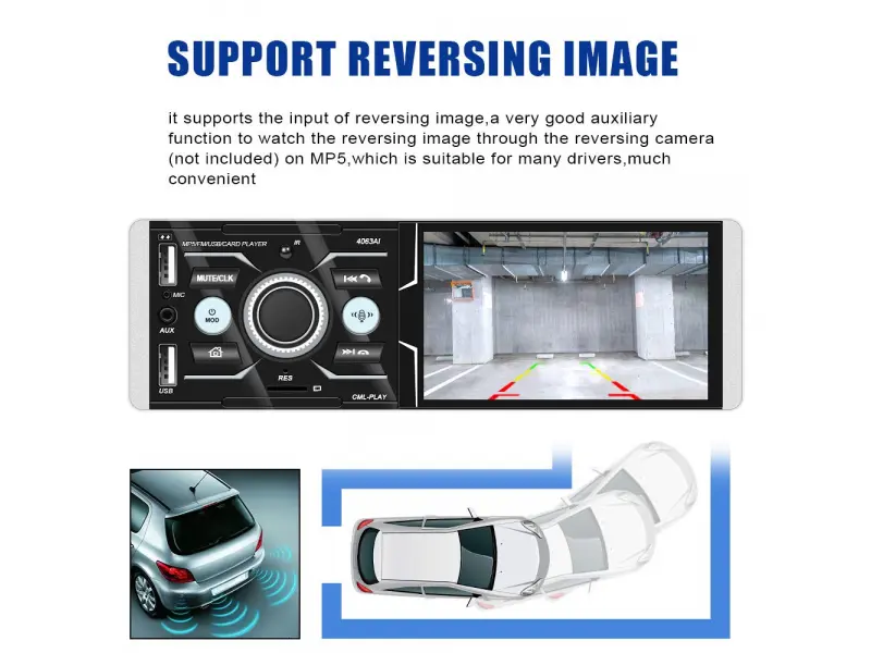 Открийте новото автордио MP3/MP5 4063AI с 4.1” дисплей и множество функции! Насладете се на кристално ясна картина с 1080P видео, мощен звук и лесна Bluetooth свързаност. С USB, AUX и SDcard поддръжка, вашите любими медии са винаги на разположение. 🚗🎶 Поръчайте сега и преобразете шофирането си в незабравимо аудио изживяване!