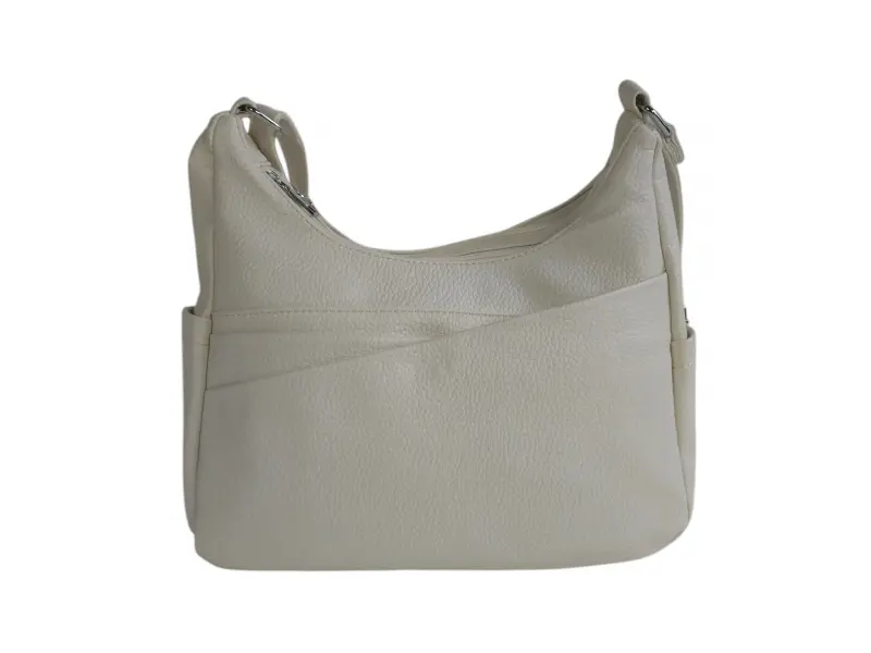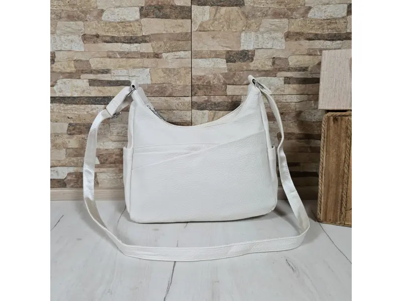 Средна дамска чанта - Дамска чанта от еко кожа. - Две основни отделения с цип - Малък вътрешен джоб с цип. - Два предни джоба с магнитно закопчаване. - Заден джоб с цип. - Два странични джоба. - Дълга регулираща се дръжка.