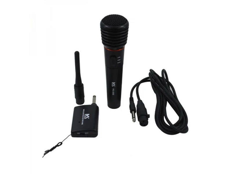 Характеристики:- предавателят и приемникът осигуряват качествено безжично предаване;- микрофонът може да бъде свързан директно към проводника;- изработени от материали и компоненти с най-добро качество;- добре балансирана честота за по-чист звук;- бутон ВКЛ / МИК / ИЗКЛ;Технически подробности:- честота на реакция: 100Hz-10000Hz (+/- 3dB);- S / N скорост: 60 dB;- работно разстояние: до 30 м;- тип излъчване: FM;- захранване за микрофон: 1,5 V AA батерия;- захранване на приемника: 1,5 V AA батерия;- импеданс: 600 Ohm;- микрофонът може да бъде свързан директно към проводника;- здрава конструкция;- жак: 6,3 мм;Пакетът съдържа:- безжичен микрофон;- получавам;- кабел за директна връзка 3 m;- антена за микрофон;- 2 х 1,5V AA батерии;- транспортна кутия.