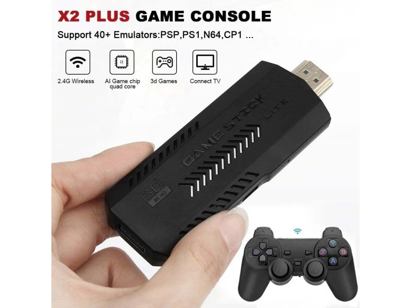 Безжична ретро конзола Game Stick X2 , 40 000 видео игри, 9 емулатора, 128 GB, 2x безжичен контролер 2,4 GHz