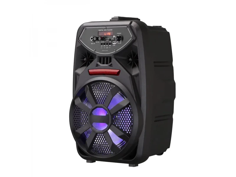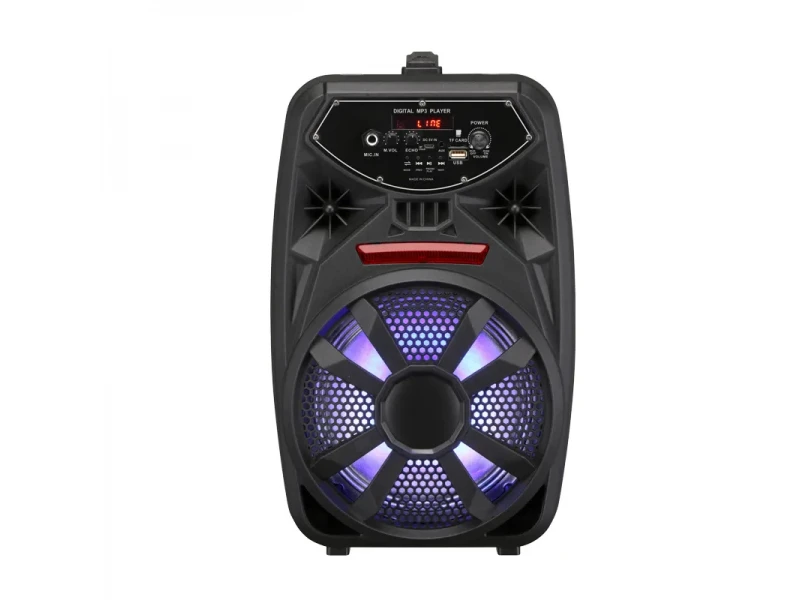 Преносима Bluetooth караоке тонколона PK-09 с FM радио, MP3 и безжичен микрофонPK-09L е изключително мощна тонколона подходяща за караоке, партита, озвучаване на сватби, ресторанти или домашни събирания. Снабдена с издръжлива батерия от 2200mAh, позволява музиката да свири с часове без да спира. Тонколоната има вградени светлини, които засилват парти обстановката – те може да се спират и пускат. Оборудвана е с колела и дръжка за по-лесно придвижване. Може също така да се закрепи на стойка за високоговорител. Може да се свърже с различни устройства чрез USB, Bluetooth, SD/TF карта или чрез AUX кабел. Тонколоната е с вградено FM радио. Високоговорителят е 8-инчов и осигурява добро качество и сила на звука.В комплекта има микрофон, благодарение на който може да се изпълнява караоке, за да бъде забавлението пълноценно!Технически характеристики:1. Изходна мощност 10W2. Честоти от 20 Hz до 20 KHz3. Акумулаторна батерия 3.7v, 2200mah4. 8 инча говорител5. Bluetooth, USB, SD/TF карта, AUX6. Микрофон7. Кабел за зареждане8. ЛЕД дисплей9. Размери: 26х22х42см– Тегло: 3 кг