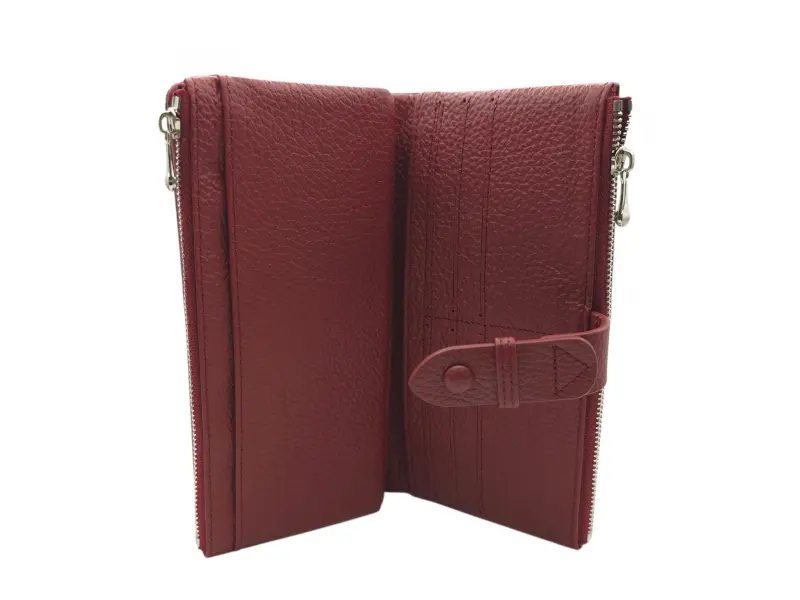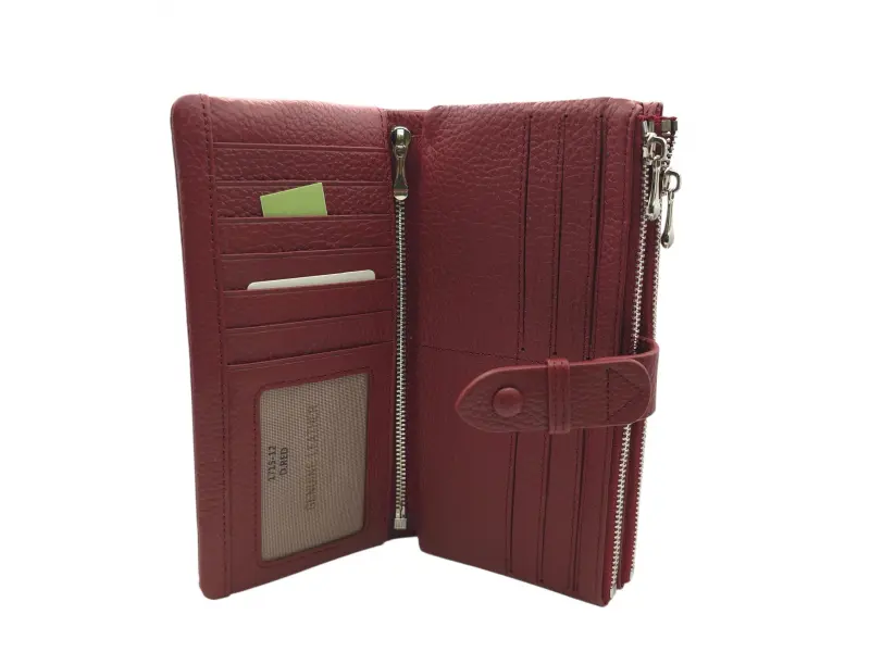 Висококачествено дамско портмоне от естествена кожа. Бордово дамско портмоне с удобно разпределение за банкноти, монети, карти и лични документи.
