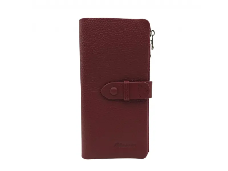 Вертикално дамско портмоне - Дамско портмоне от естествена кожа. - Закопчаване с копче тик-так. - Отделения за карти. - Отделения за банкноти. - Вътрешен джоб с цип. - Монетник с цип.