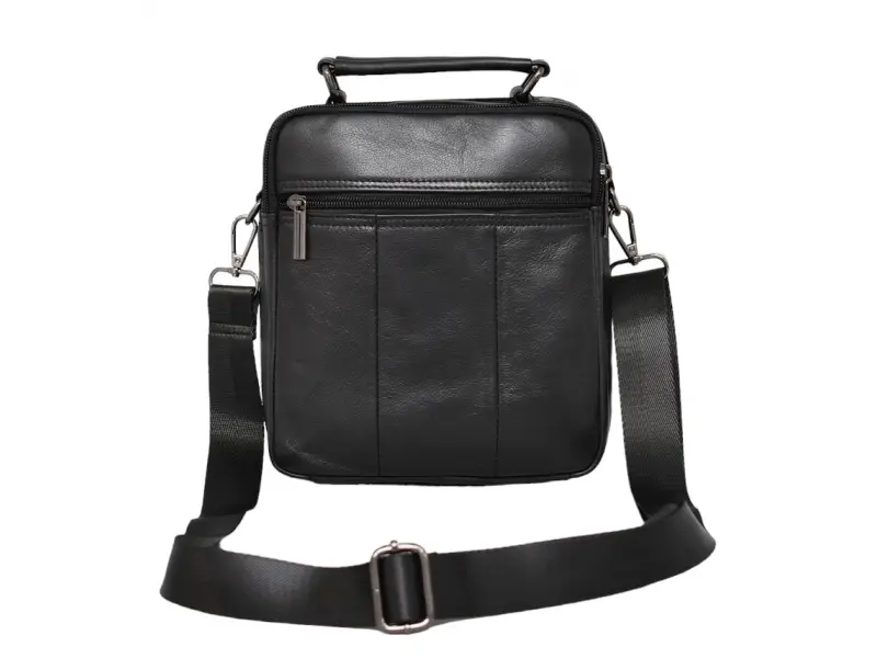 Мъжка чанта от качествена естествена кожа - Две основни отделения с цип. - Малък вътрешен джоб с цип. - Три предни джоба с цип. - Заден джоб с цип. - Регулираща се презрамка. - Дръжка за носене в ръка.
