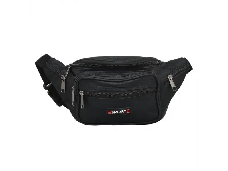 Чанта за през кръста за работа Черна чанта за през кръста от плат. Мъжка чанта с основно отделение с цип, два предни джоба с цип и заден джоб с цип, две странични джобчета с цип. Удобна мъжка чанта с регулиращ се колан от полиестер.
