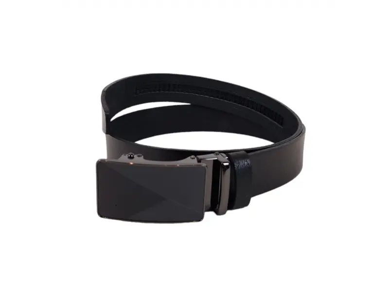 Черен мъжки колан от качествена естествена кожа, подходящ за официално или ежедневно облекло. Автоматичен мъжки колан, който може да се закопчава през няколко милиметра. Колан с възможност за лесно скъсяване.