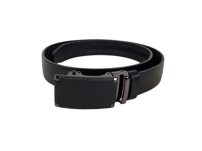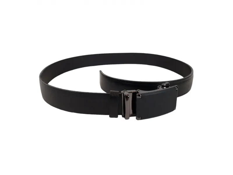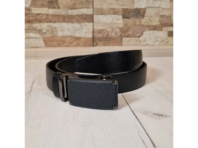 Черен мъжки колан от качествена естествена кожа, подходящ за официално или ежедневно облекло. Автоматичен мъжки колан, който може да се закопчава през няколко милиметра. Колан с възможност за лесно скъсяване.