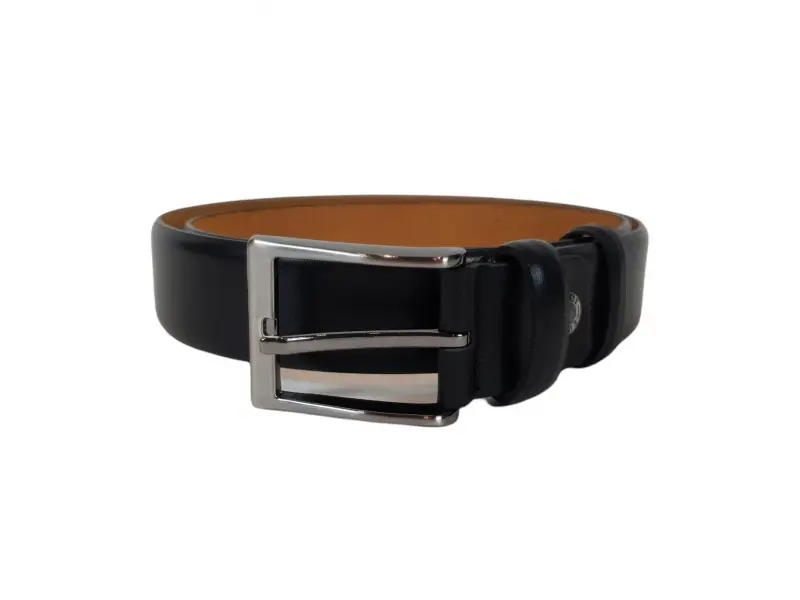 Мъжки стилен колан от естествена телешка кожа. Черен колан с метална тока, подходящ за дънки и панталони с възможност за лесно скъсаване.
