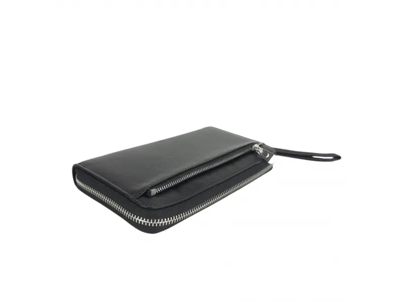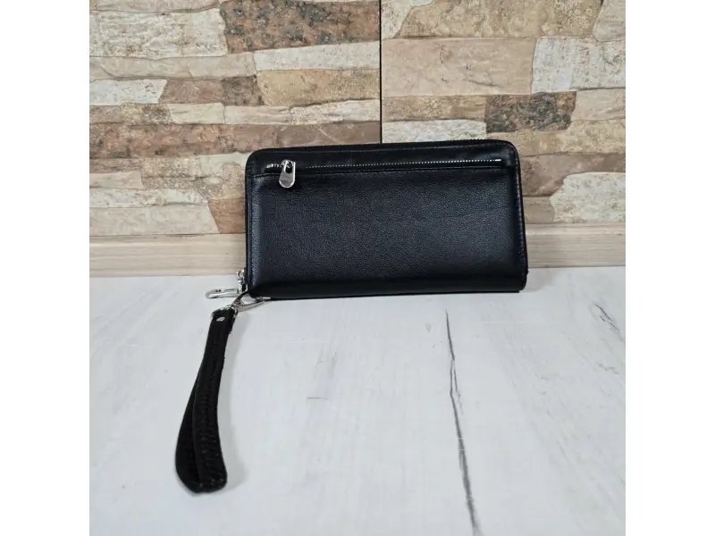 Качествен мъжки портфейл с цип - Мъжки портфейл от качествена естествена кожа. - Затваряне с цип. - Отделенение за банкноти. - Отделение за карти и лични документи. - Отделение за монети. - Дръжка за носене в ръка.