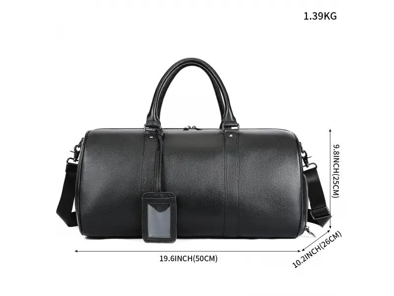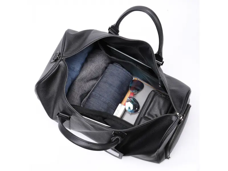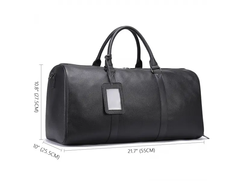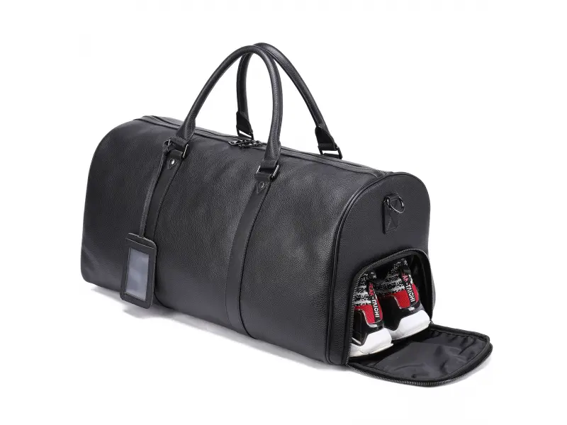 Луксозен сак в черен цвят - Сак от качествена ествествена кожа. - Едно основно отделение с цип. - Вътрешен джоб с цип. - Странично отделение за обувки с цип. - Удобни дръжки за носене. - Дълга регулираща се дръжка.