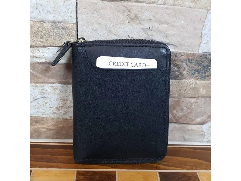 Черен визитник от естествена кожа с цип | Аксесоари (ePazar.bg)