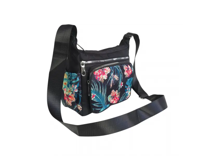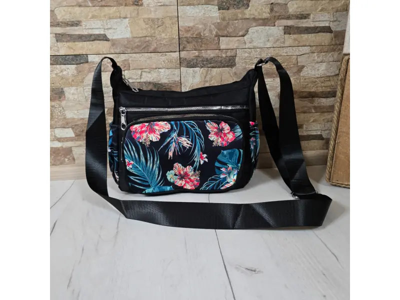 Черна чанта от текстил с цветя - Greta | Дамски чанти (ePazar.bg)
