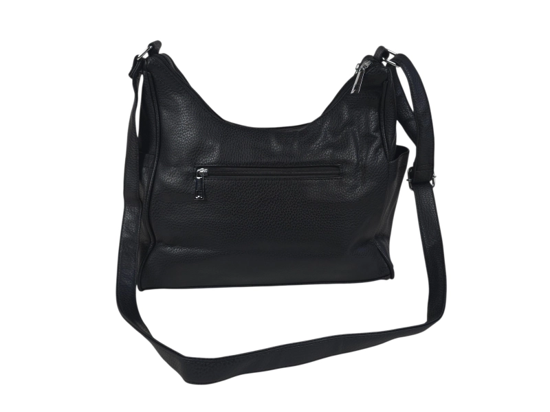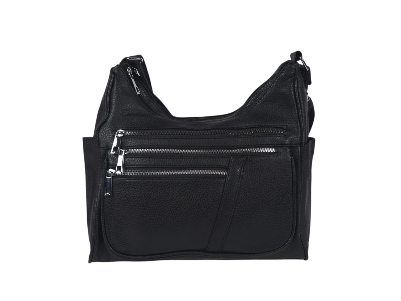 Удобна дамска чанта - Дамска чанта от еко кожа. - Две основни отделения с цип - Малък вътрешен джоб с цип. - Три предни джоба с цип. - Заден джоб с цип. - Два странични джоба. - Дълга регулираща се дръжка.