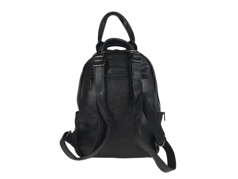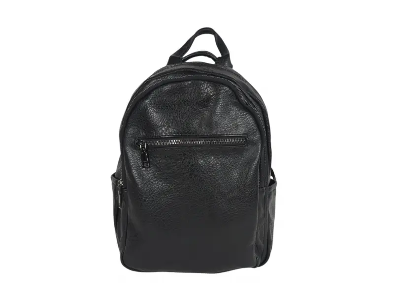 Дамска раница с удобни отделения - Дамска раница от еко кожа. - Едно основно отделение с цип. - Вътрешен джоб с цип. - Отделение за ключове и документи. - Голям преден джоб с цип. - Малък преден джоб с цип. - Два странични джоба. - Заден джоб с цип. - Дръжка за носене в ръка. - Регулиращи се презрамки. - Възможност за носене на дръжката като чанта.