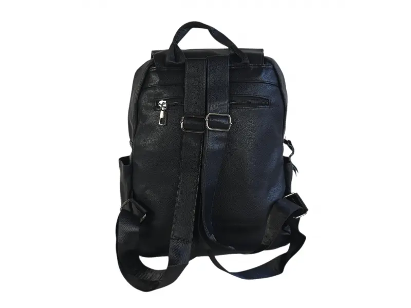 Дамска раница от висококачествена изкуствена кожа. Черна раница с красив и актуален дизайн с удобни отделения. Ежедневна дамска раница с удобни регулиращи се презрамки.