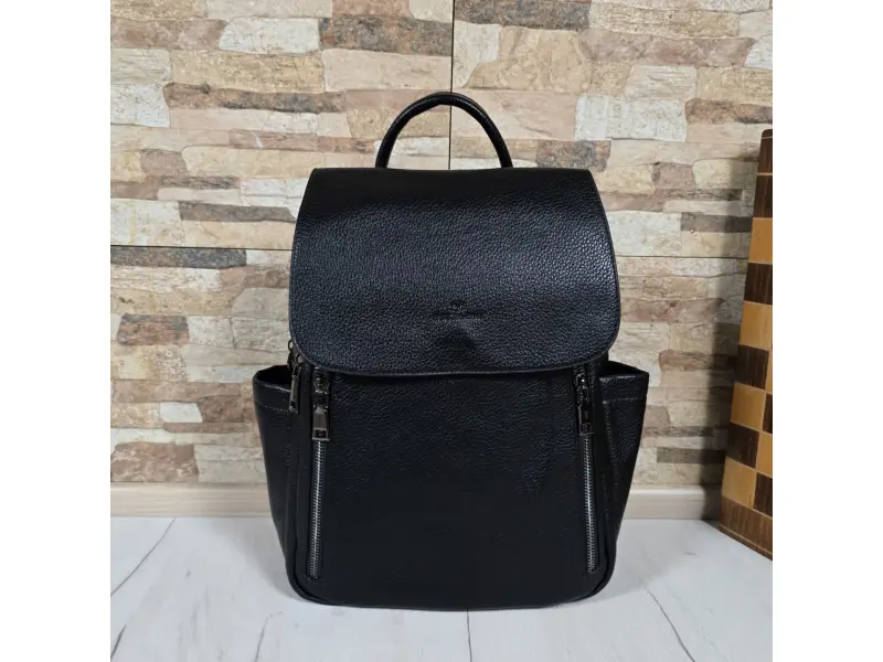 Актуална дамска раница - Дамска раница от еко кожа. - Едно голямо отделение с цип и капак с магнитно закопчаване. - Вътрешен джоб с цип. - Вътрешен джоб без цип. - Голям преден джоб с цип под капака. - Два предни джоба с цип. - Два странични джоба. - Дръжка за носене в ръка. - Регулиращи се презрамки.