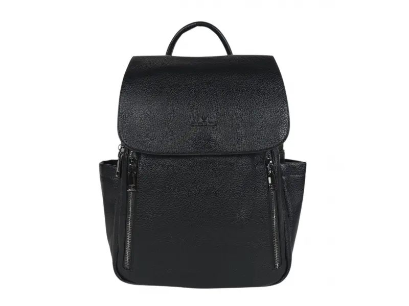 Дамска раница от висококачествена изкуствена кожа. Черна раница с красив и актуален дизайн с удобни отделения. Ежедневна дамска раница с удобни регулиращи се презрамки.