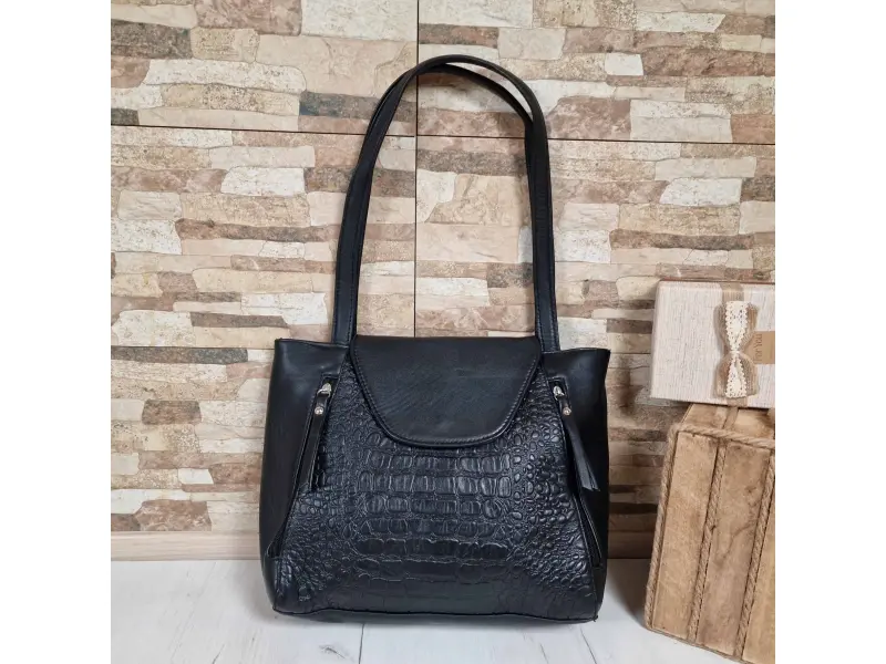 Удобна дамска чанта за ежедневието - Дамска чанта от естествена кожа. - Едно основнo отделениe с цип. - Капак затварящ се с копче тип магнит. - Малко вътрешно джобче с цип. - Отделение за телефон или ключове. - Заден джоб с цип. - Два предни джоба с цип.