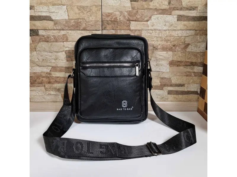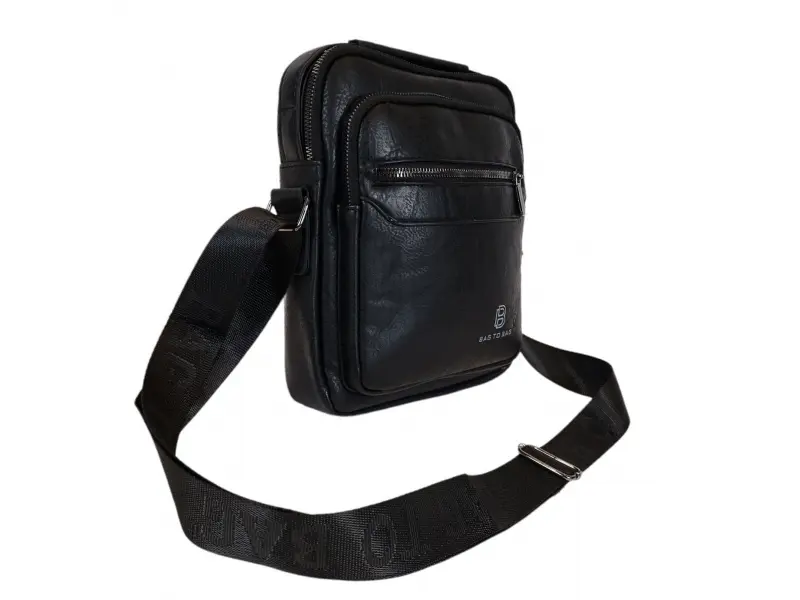 Мъжка чанта от качествена еко кожа в черен цвят. Удобна чанта с едно основно отделение с цип, малко вътрешно джобче с цип, два предни джоба с цип и заден джоб с цип. Здрава мъжка чанта с удобна дръжка за носене в ръка и регулираща се дълга дръжка.