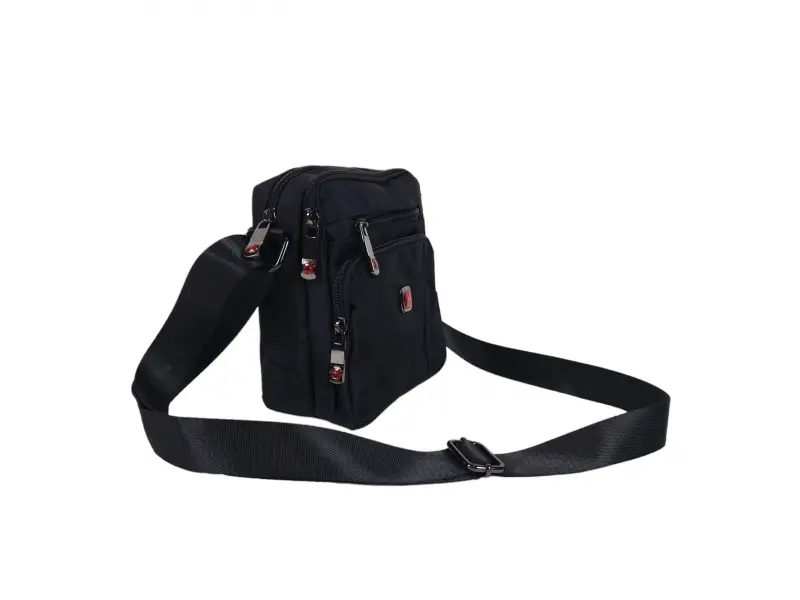 Купи сега "Черна мъжка чанта - Haren"от висококачествена и здрава материя. Черна чанта за през рамо с много отделения затварящи се със здрави ципове и удобна дълга регулираща се дръжка. ePazar.bg
