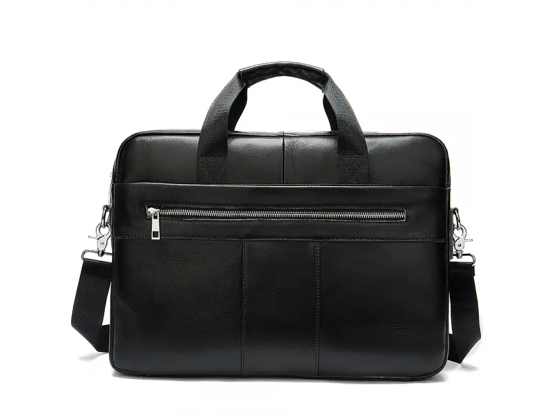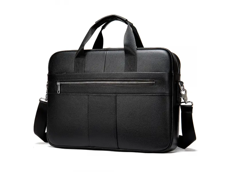 Голяма бизнес чанта от естествена кожа - Едно основно отделение с цип. - Отделение за лаптоп затварящо се с лепенки . - Вътрешен джоб с цип. - Отделение за телефон. - Отделение за документи. - Два предни джоба с цип. - Заден джоб с цип. - Удобни дръжки за носене. - Дълга регулираща се дръжка.