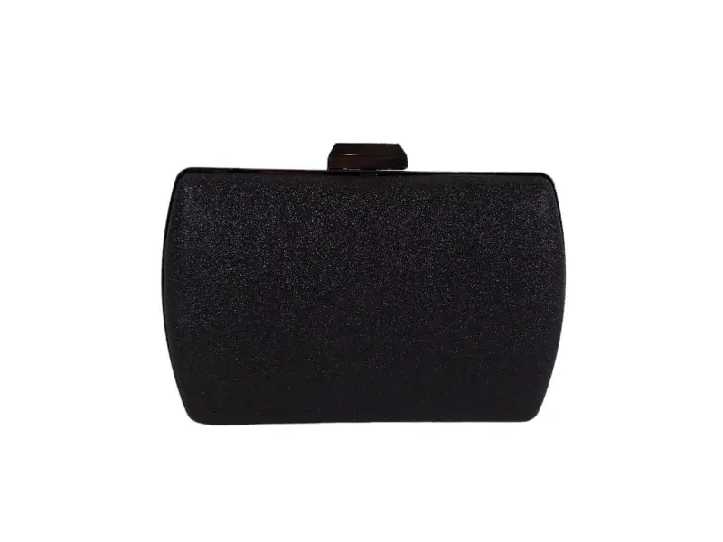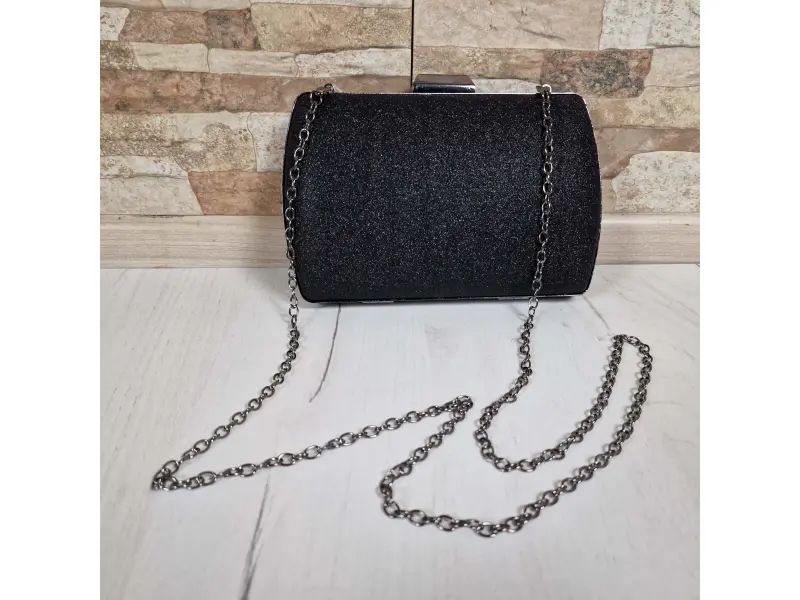 Елегантна дамска чанта в черен цвят - Официална дамска чанта с едно отделение. - Отваряне и затваряне с механизъм. - Метален кант. - Дълга дръжка тип верижка.