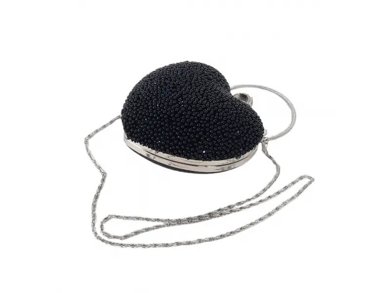 Черна официална чанта с перли - сърце