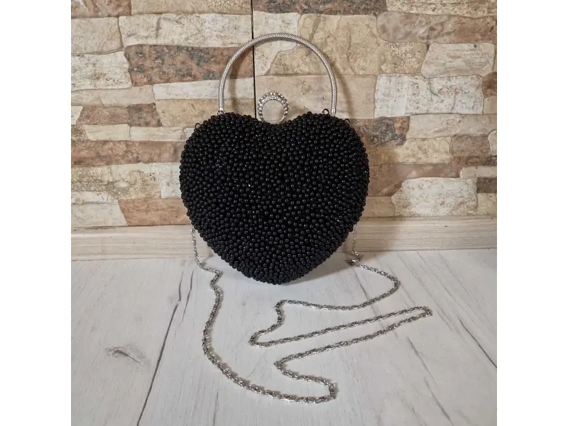 Черна официална чанта с перли - сърце | Дамски чанти (ePazar.bg)