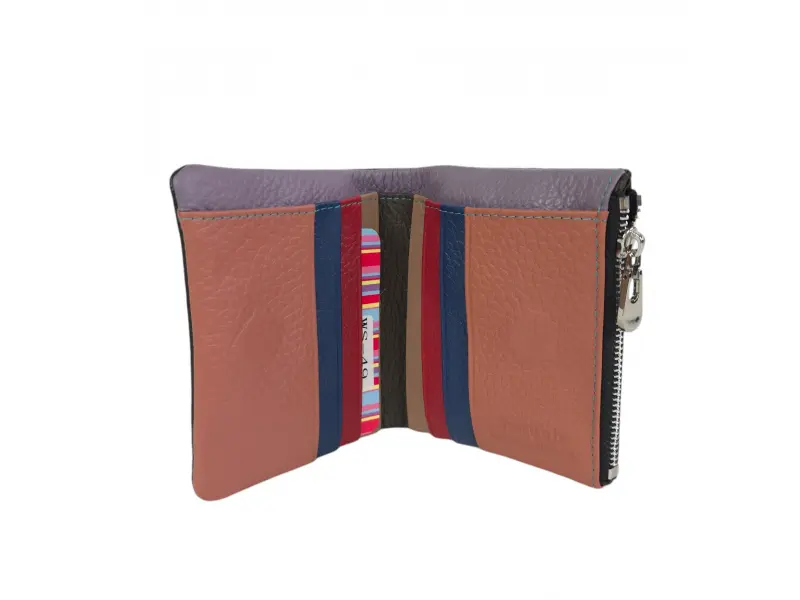 Кожено малко дамско портмоне с магнит - Дамско портмоне от естествена кожа. - Закопчаване с магнит. - Отделения за карти. - Отделения за банкноти. - Външен монетник с цип.