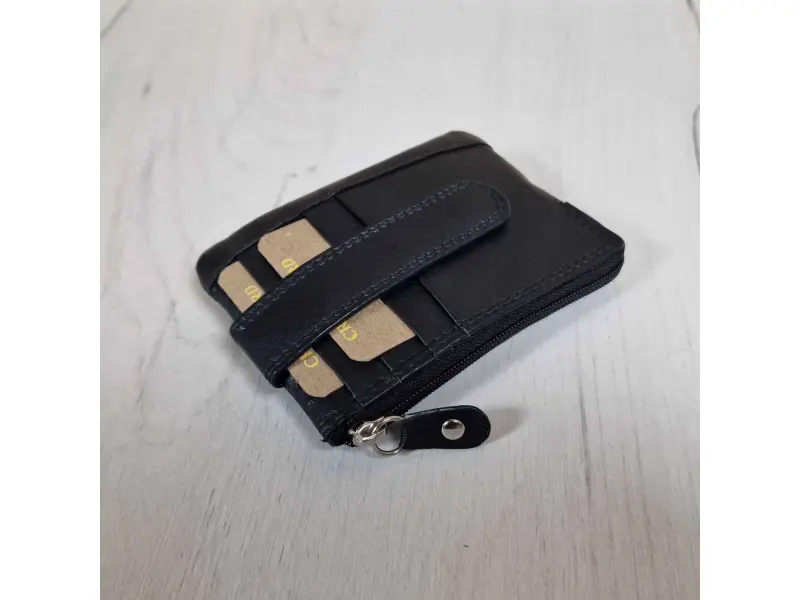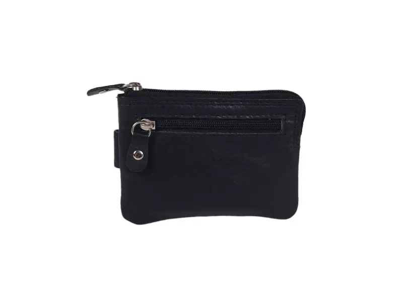 Качествено портмоне - ключодържател в черен цвят - Портмоне - ключодържател от естествена кожа. - Отделение за банкноти. - Отделение за монети. - Отделение за карти и лични документи. - Два ринга за закачане на ключове.