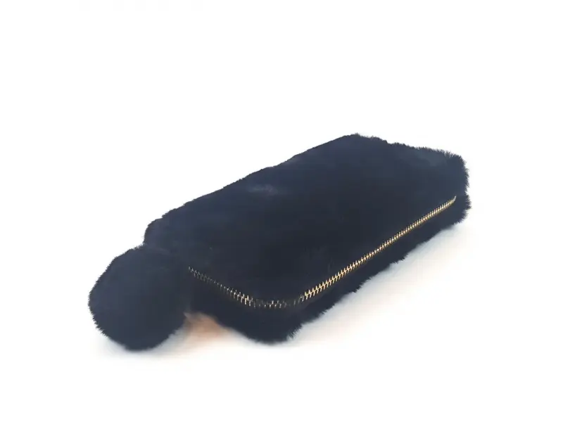 Невероятно дамско портмоне от еко кожа. Черно дамско плюшено портмоне със златист цип , вътрешно разпределение за банкноти , монети , карти и документи. Портмоне с висяща пухена топка.