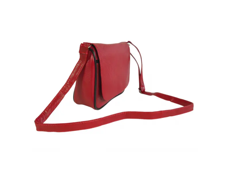 Кожена дамска чанта за през рамо - Дамска чанта от естествена кожа. - Едно основно отделение с цип и капак с магнитно закопчаване. - Малко вътрешно джобче с цип. - Преден джоб под капака с цип. - Заден джоб с цип. - Регулираща се се дълга дръжка.
