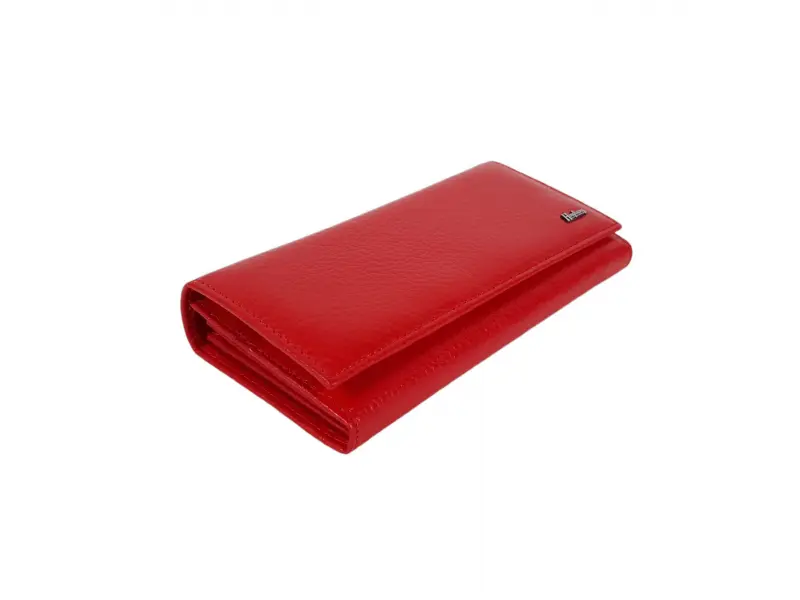 Кожено дамско портмоне - Червено портмоне от естествена кожа. - Закопчаване с копче тик-так. - Отделения за карти и лични документи. - Отделение за банкноти. - Монетник с цип.