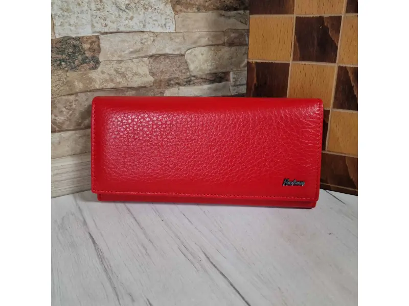 - Червено портмоне от естествена кожа.