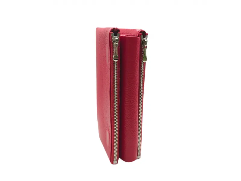 Голямо дамско портмоне от качествена естествена кожа с магнитно закопчаване. Кожено портмоне с удобни отделения за банкноти, карти и лични документи и монетник с цип.
