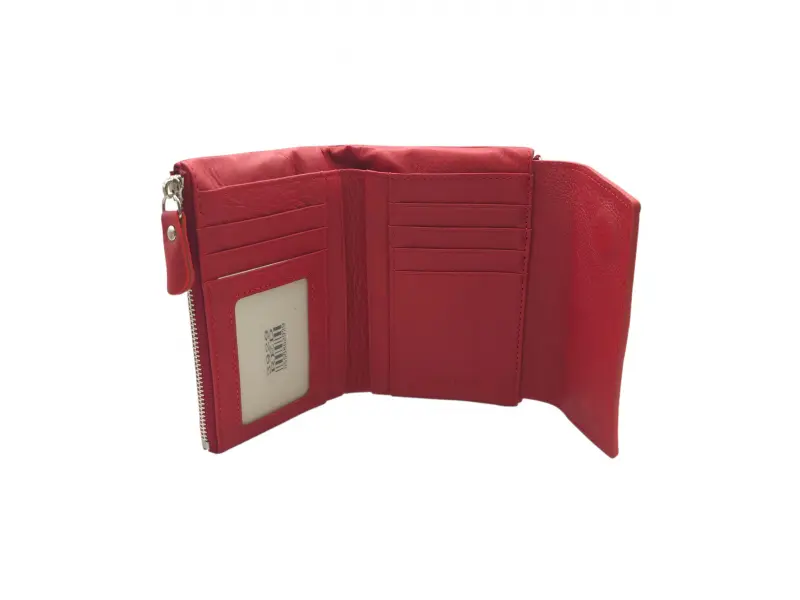 Среднo дамско портмоне - Дамско портмоне от естествена кожа. - Закопчаване с магнит. - Отделения за карти. - Отделения за банкноти. - Отделение с цип. - Външен монетник с цип.