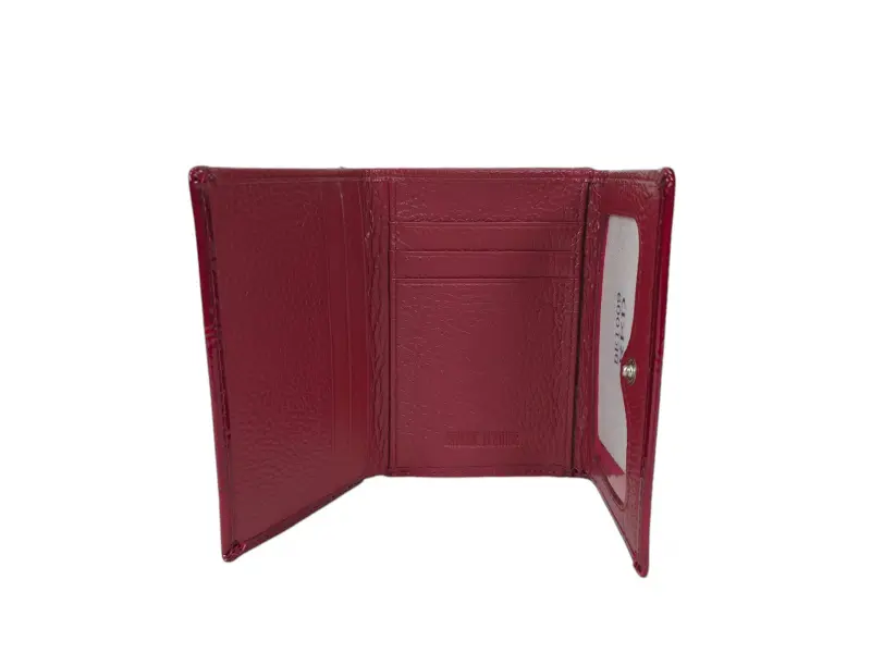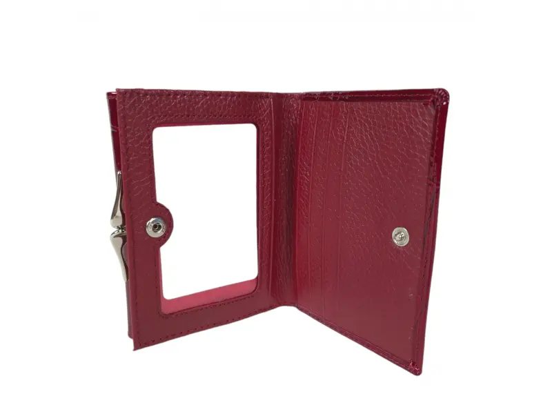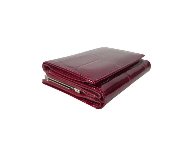 Компактно дамско портмоне - Дамско портмоне от естествена кожа и лак. - Отделения за банкноти. - Отделения за карти и лични документи. - Отделения за монети с щипка.