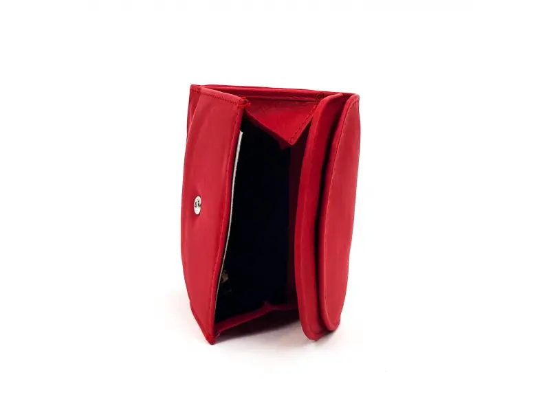 Качествено дамско портмоне от естествена кожа. Мека на допир кожа , цвят червен с отделения за карти и документи , място за пари , много компактен модел.