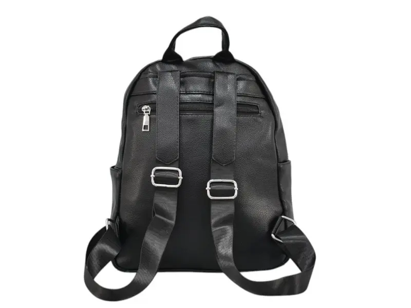 Нова удобна раница за дами - Дамска раница от еко кожа. - Едно основно отделение с цип. - Вътрешен преграда. - Малък вътрешен джоб с цип. - Преден джоб с цип. - Два странични джоба. - Заден джоб с цип. - Дръжка за носене в ръка. - Регулиращи се презрамки.