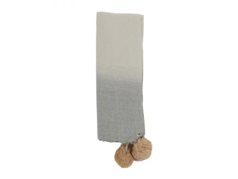 Мек и удобен дамски шал подходящ както за студените есенни дни така и за зимния сезон. Дамски шал с интересно съчетение на цветовете с 65% viscosa и 35% вълна. Шал с пухени топки, който могат да се свалят, закрепени са с безопасна игла.
