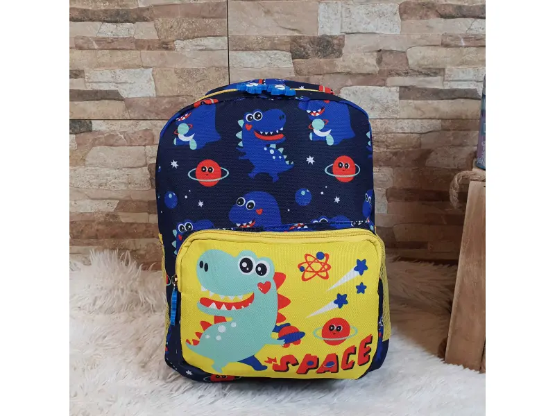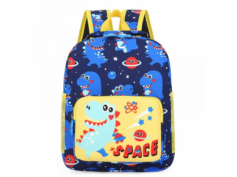 Детска раница - Space. Детска раница за момче в син цвят с динозавър и космос. Удобна детска раница с регулиращи се презрамки и дръжка за носене.