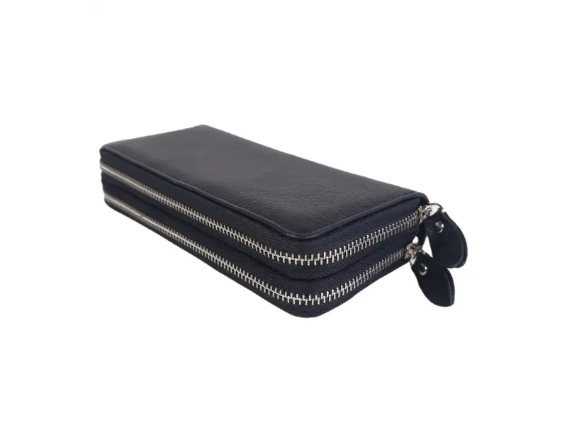 Луксозен мъжки портфейл - Мъжки портфейл от качествена естествена кожа. - Два джоба с цип. - Отделенение за банкноти. - Отделение за карти и лични документи. - Отделение за монети. - Дръжка за ръка.
