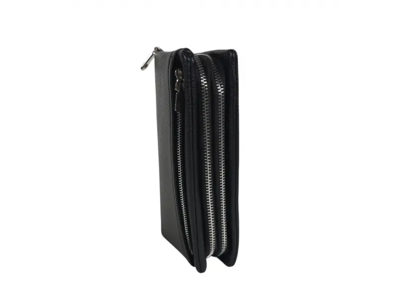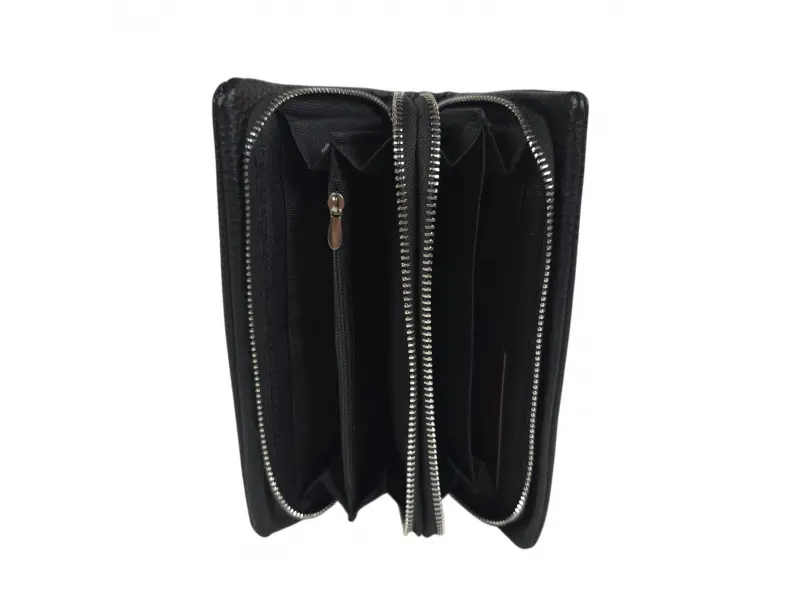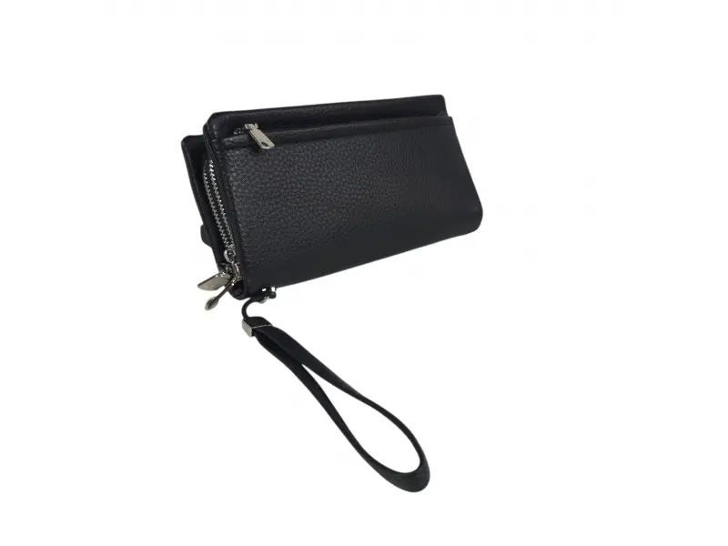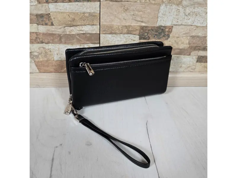 Голям мъжки портфейл - Мъжки портфейл от еко кожа. - Отделенения за банкноти. - Отделение с цип за монети. - Слотове за карти и лични документи. - Дръжка за носене в ръка.