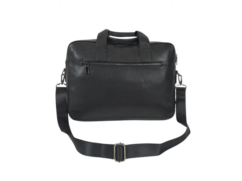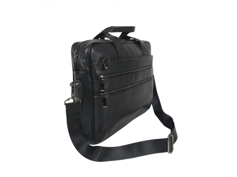 Хоризонтална мъжка чанта от естествена кожа - Основно отделение с цип. - Отделение за лаптоп с лепенка. - Малък вътрешен джоб с цип. - Три предни джоба с цип. - Заден джоб с цип. - Регулираща се презрамка. - Дръжка за носене в ръка.