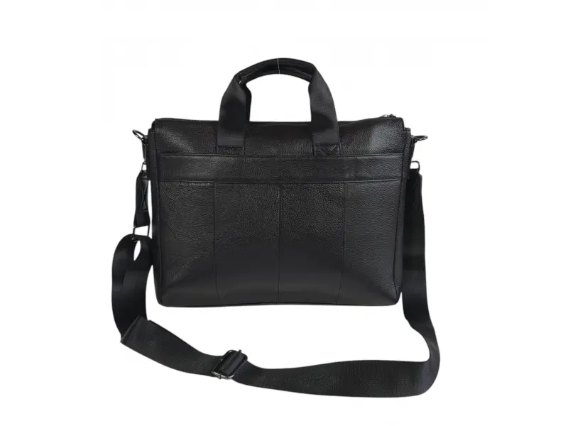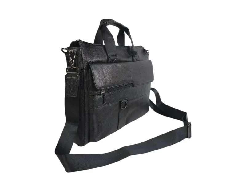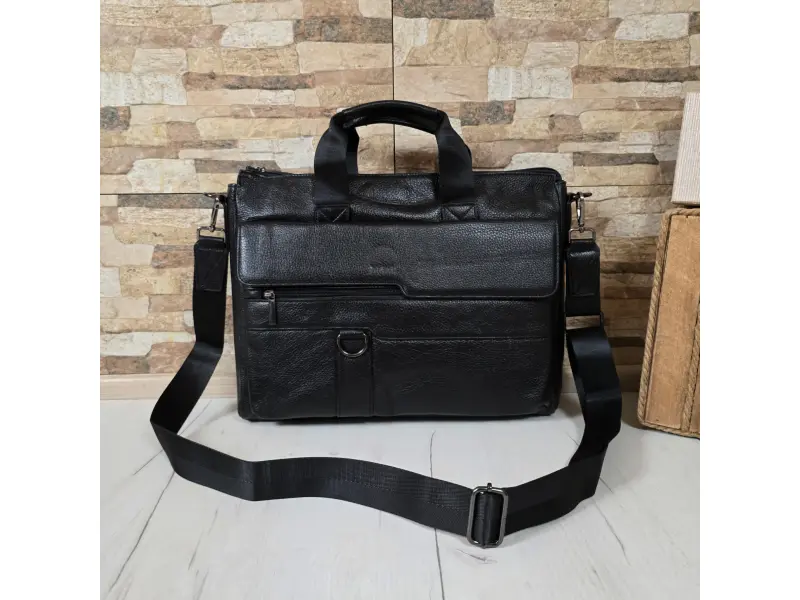 Голяма мъжка чанта от качествена естествена кожа. Луксозна мъжка чанта с отделение за лаптоп с здрави ципове. Черна мъжка чанта с много отделения и удобна дълга регулираща се дръжка.